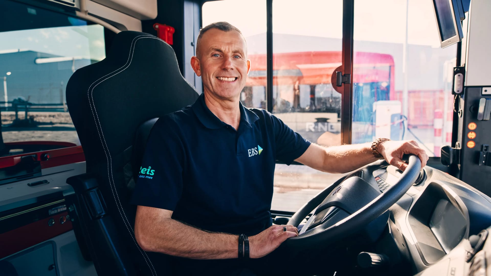 Soms komt een nieuwe passie via een omweg op je pad. Voor Arno was dat via zijn partner, die al jaren in het vak zit. "Ik was na 25 jaar toe aan een nieuwe uitdaging," vertelt Arno nuchter. Hij behaalde zijn rijbewijs D en Code 95 en stapte direct bij EBS achter het stuur. "Het openbaar vervoer is een wereld op zich. Je bent eigen baas op de bus, maar tegelijkertijd sta je midden in de samenleving."